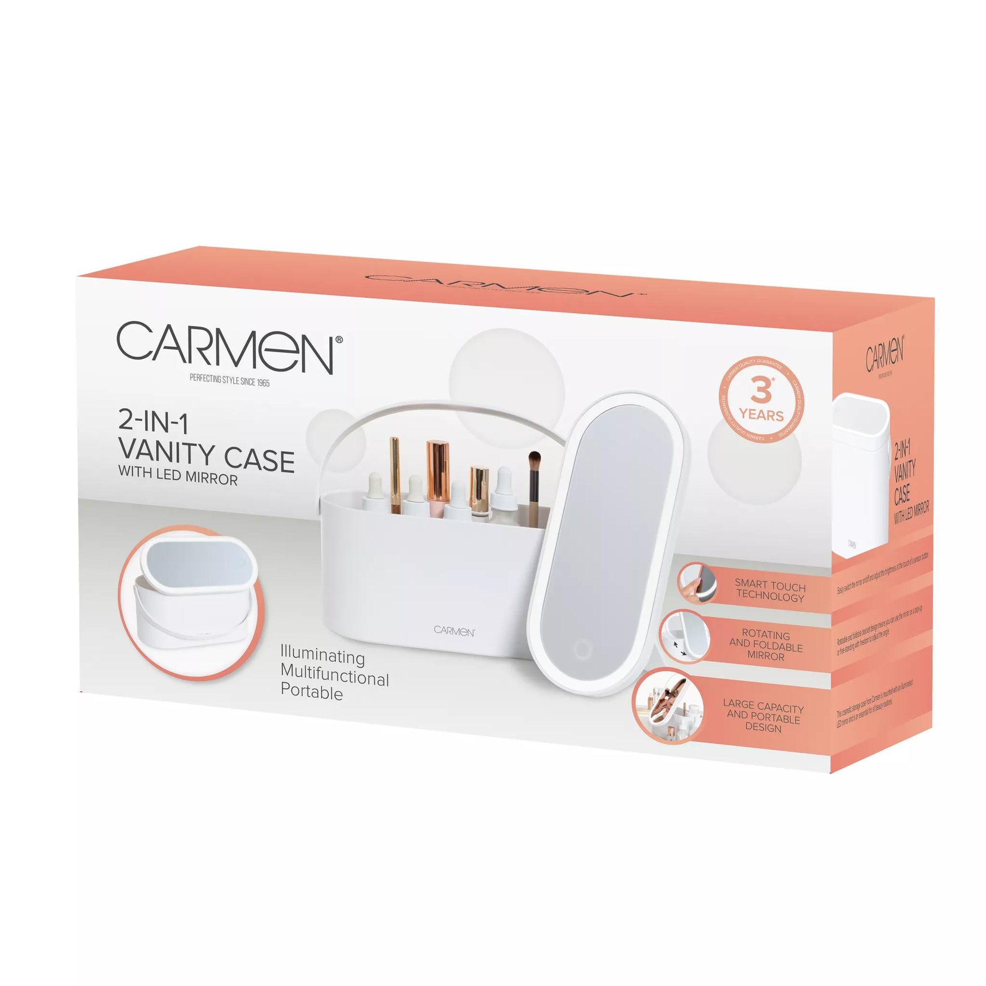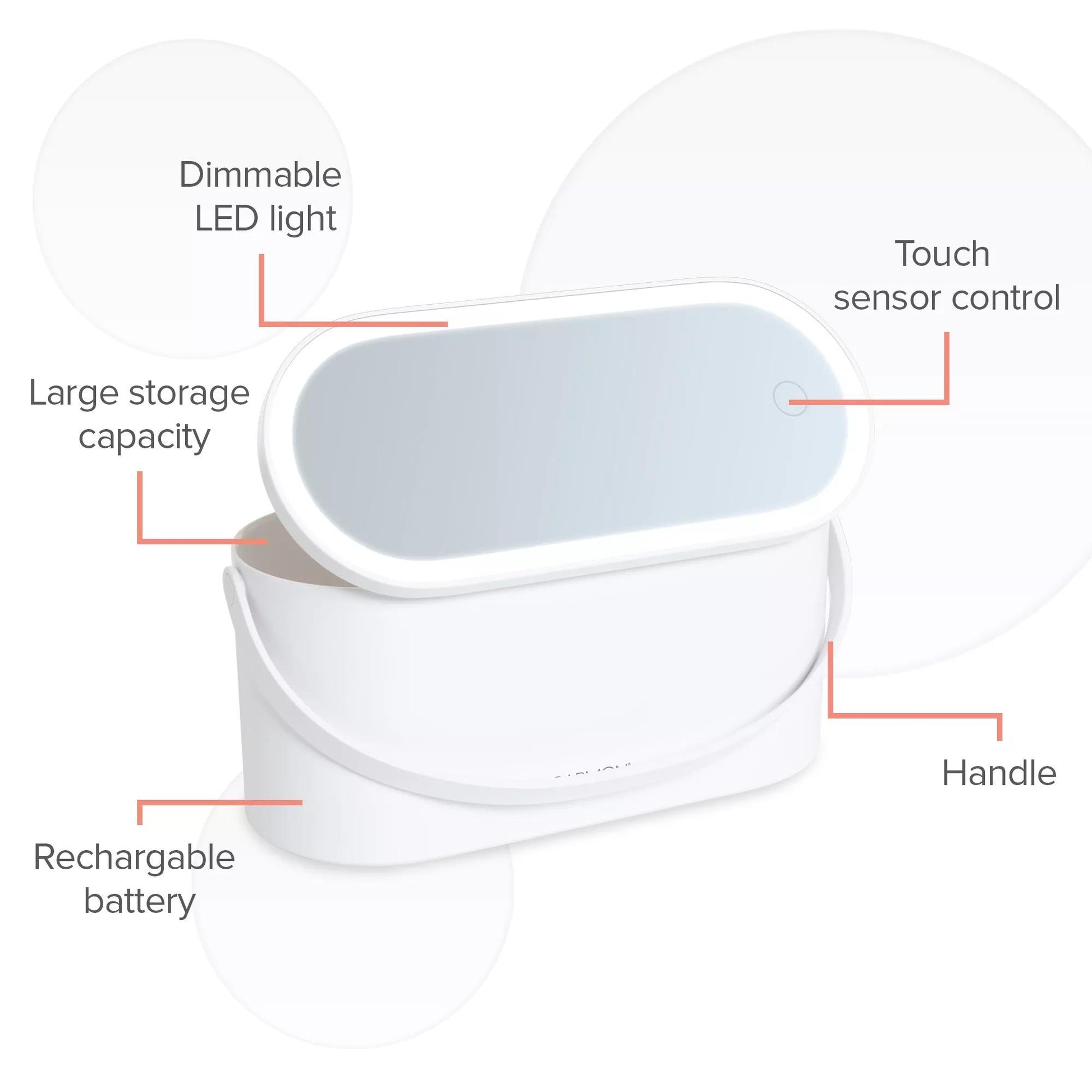Portable LED Cosmetic Storage Case – Mirror, Dimming, USB Rechargeable