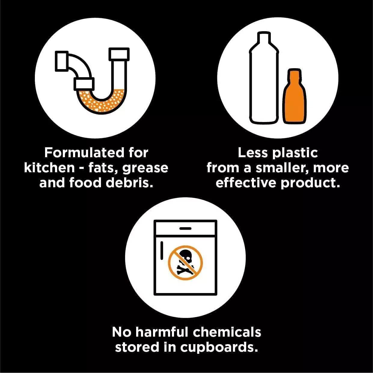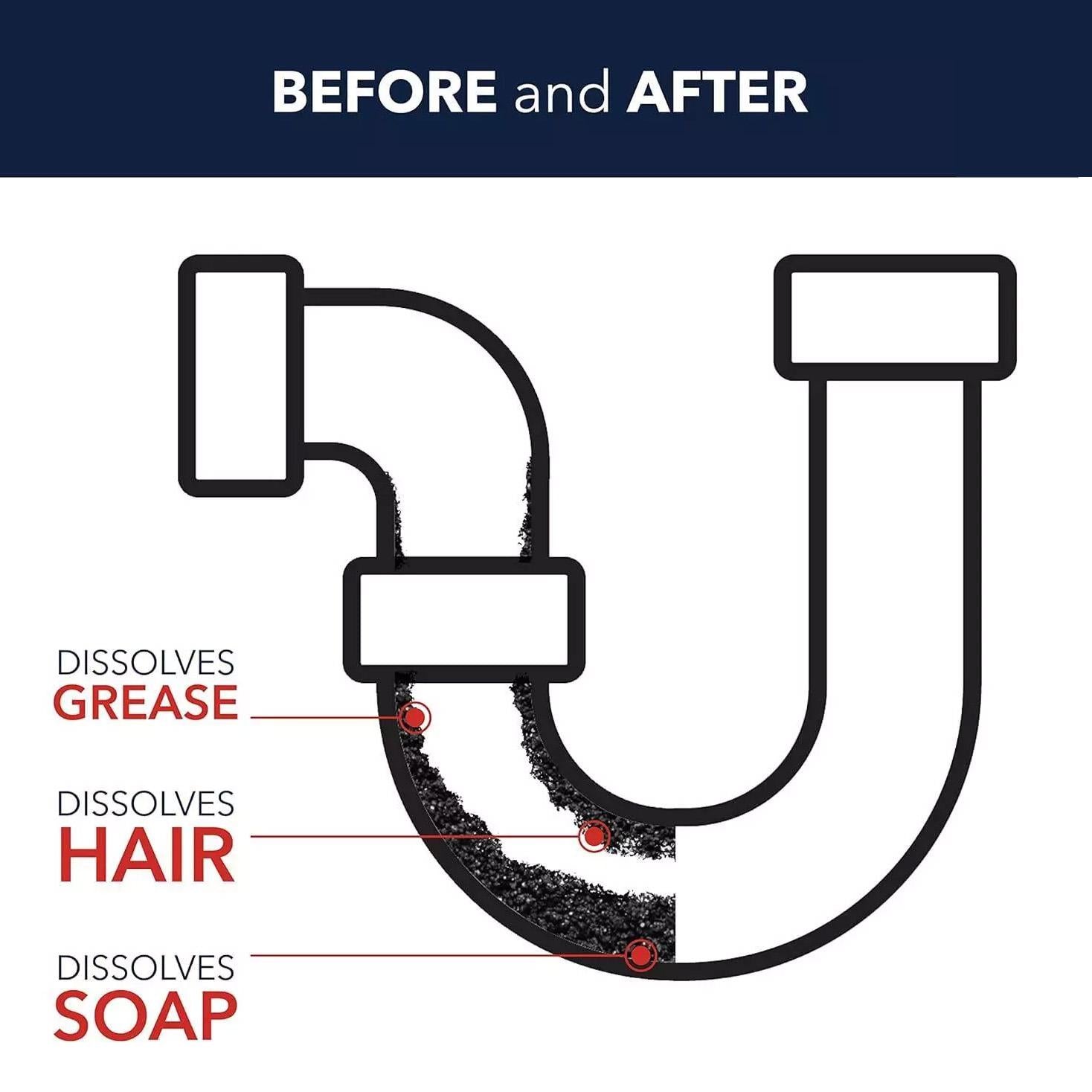 🌀 Double Action Formula: Effectively unblocks and cleans drains in one application.
