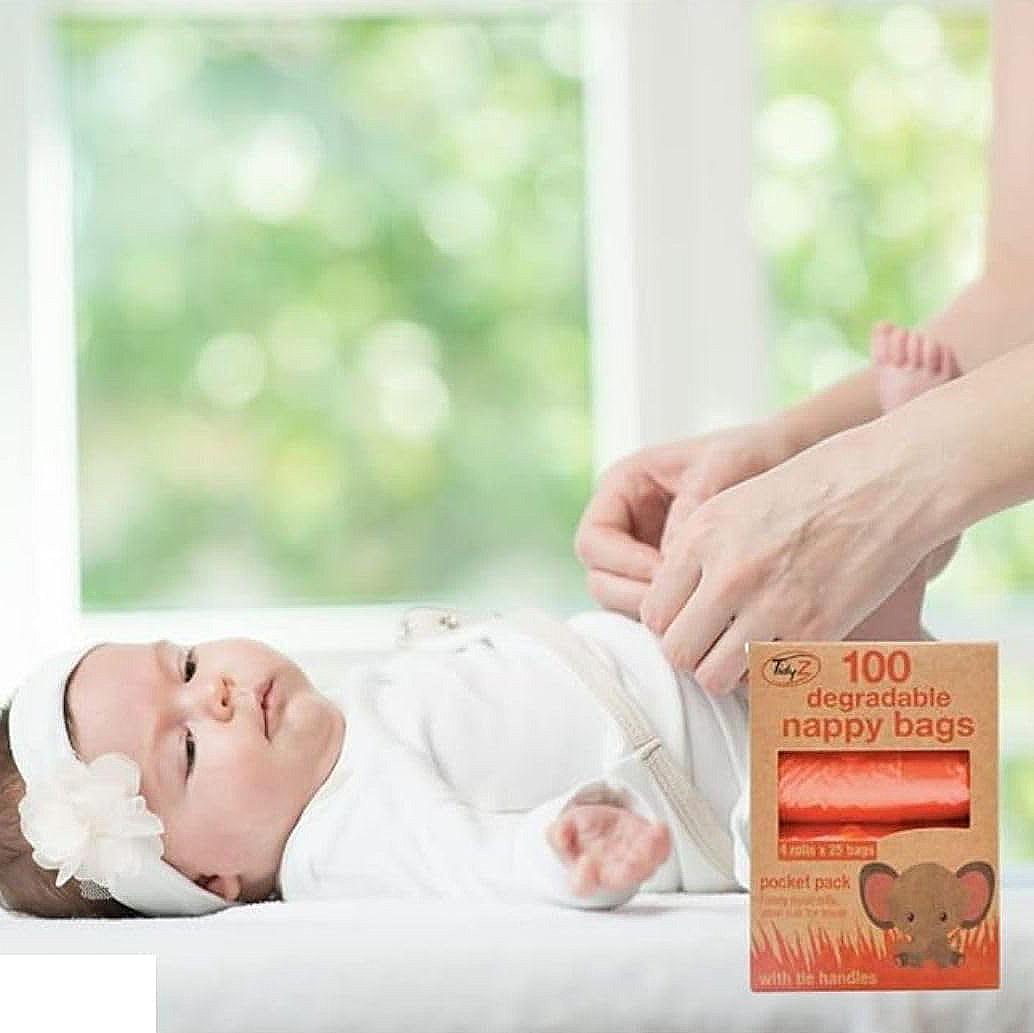 100pc Degradable Nappy Bags – Pack of 4 x 25 (Tie Handle, Leak-Proof)